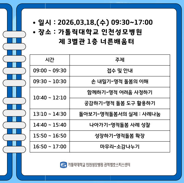 ㅇ 장 소 : 가톨릭대학교 인천성모병원 제3별관 1층 너른배움터